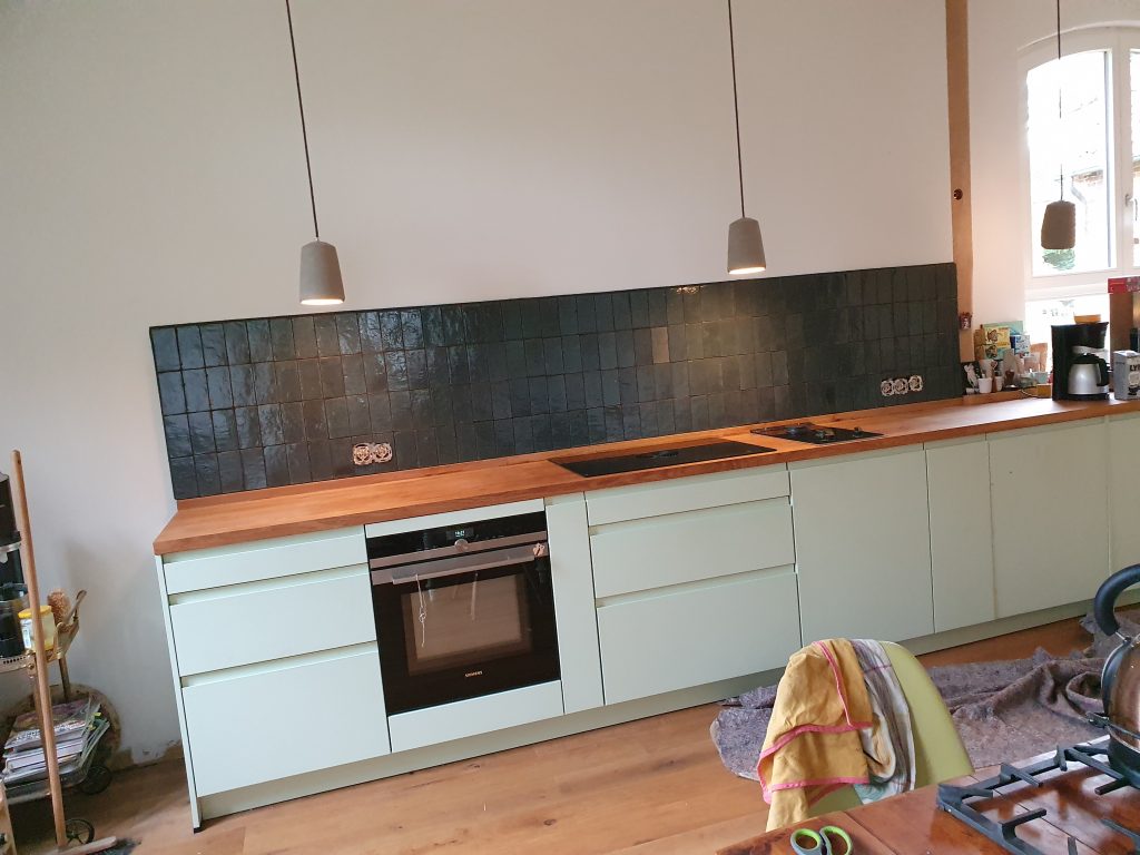 Neuen Fliesenspiegel in vorhandene Küche installiert.